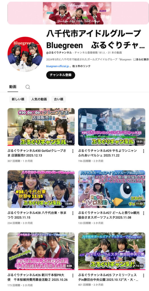 2025.04.30 2026.02.17 ぶるぐりのYouTubeチャンネルに2期生が登場! メンバーの素顔や成長が見れる、人気コンテンツ「ぶるぐりチャンネル」!バックステージや楽しい撮影の裏側もしっかりとチェックできます!日々更新しますので、見逃さないようチャンネル登録してね♥ youtube ぶるぐりチャンネル【公式】 TikTokアカウントできました!! 前の記事 八千代市の服部市長へご挨拶に伺いました♥ 次の記事