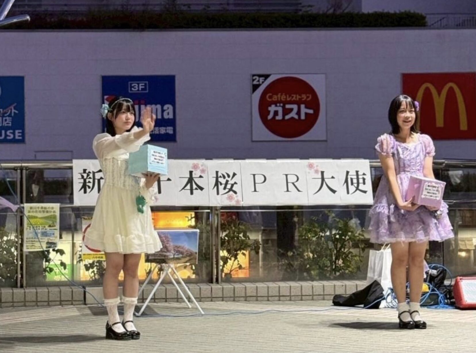 新川千本桜は、市や地域住民からなる「新川千本桜の会」が関わっています。新川千本桜が毎年美しく咲き誇るためには市が植栽した約1,200本の桜の維持管理を、会員有志による除草、剪定、害虫駆除、支柱補修、施肥などの活動を通じて行い、たくさんの維持費がかかります。又、来年は「桜シンポジウム」が開催されるということもあり、私たちPR大使ができることで協力するため、募金で集まったお金を寄付して参りました。